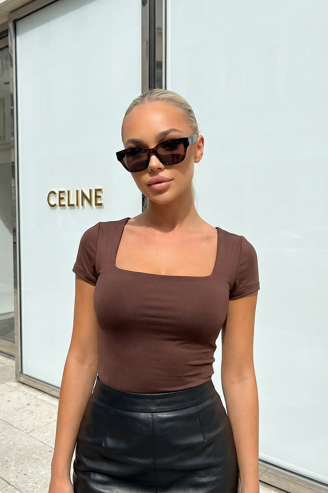 Enkel tee i smoothie materiale med firkantet halsudskæring.