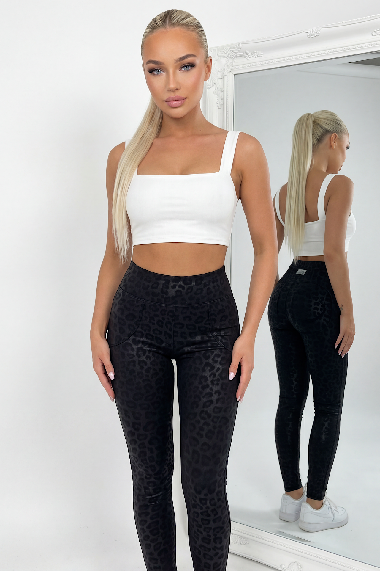 De fedeste PUSH UP leggings, med snyde lommer foran. De indeholder en masse stræk og er FANTASTISKE at have på. Bukserne har middel høj talje, og med en tyk elastik kant i livet.