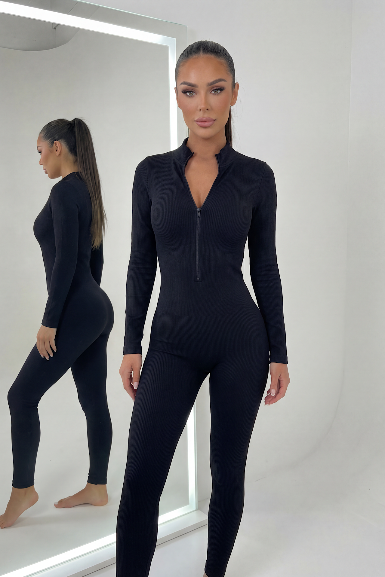 Rib jumpsuit med lynlås